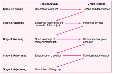 The Five-Stage Team Development model, demostrates the different stages of project team