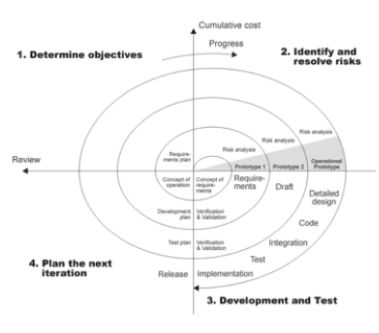Basic philosophy is to repeat steps of - Define goals, analyze risks, Evaluate plan next iteration