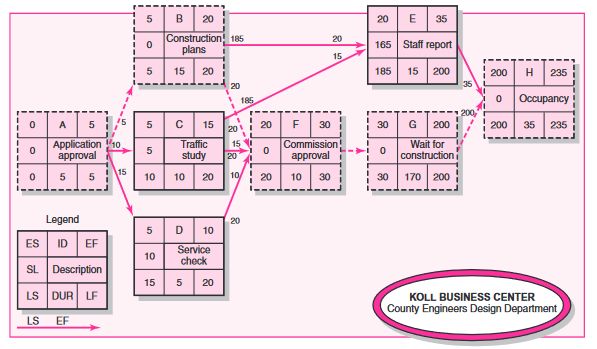 Activity-on-Node Network Diagram with Slack, Backward- & Forward pass